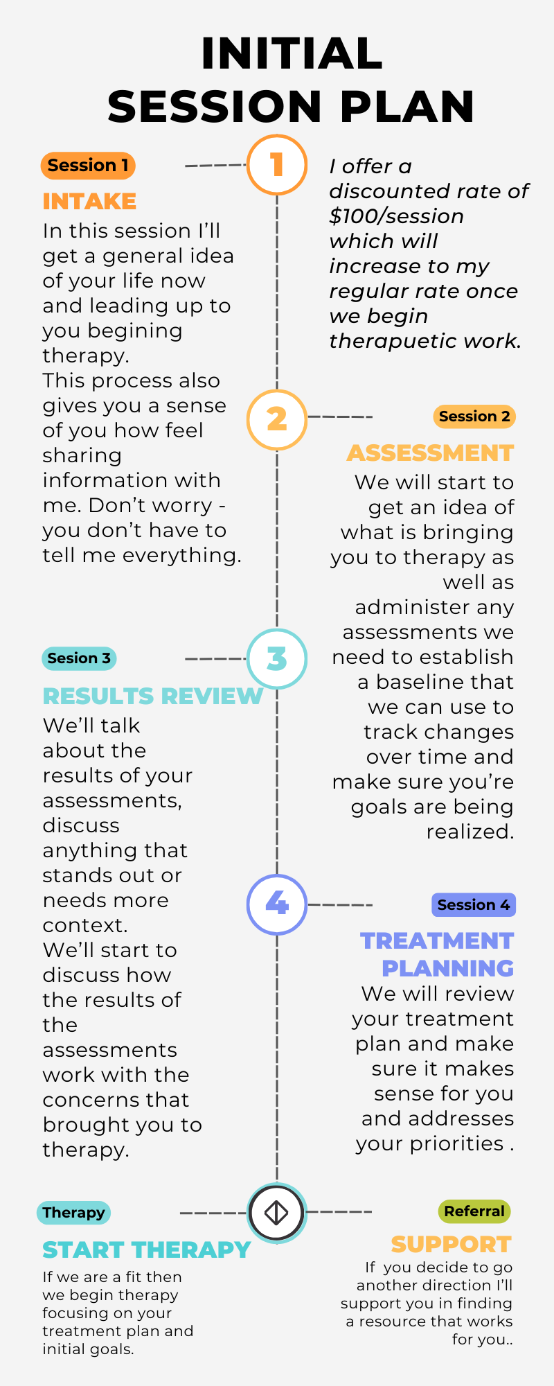 Assessment and evaluation to deepen our understand of what brought you to therapy